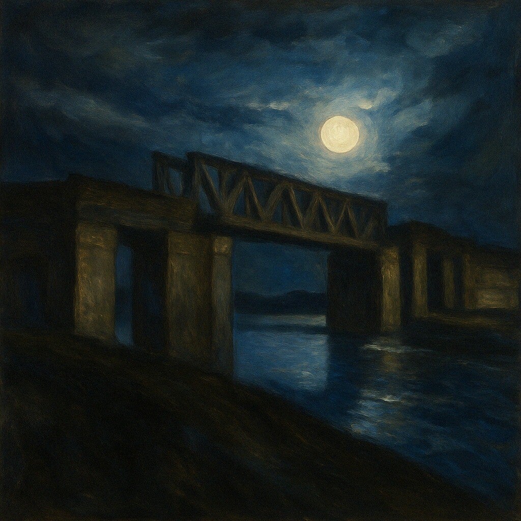 Titel: 'De oude spoorbrug over het van Starkenborghkanaal'